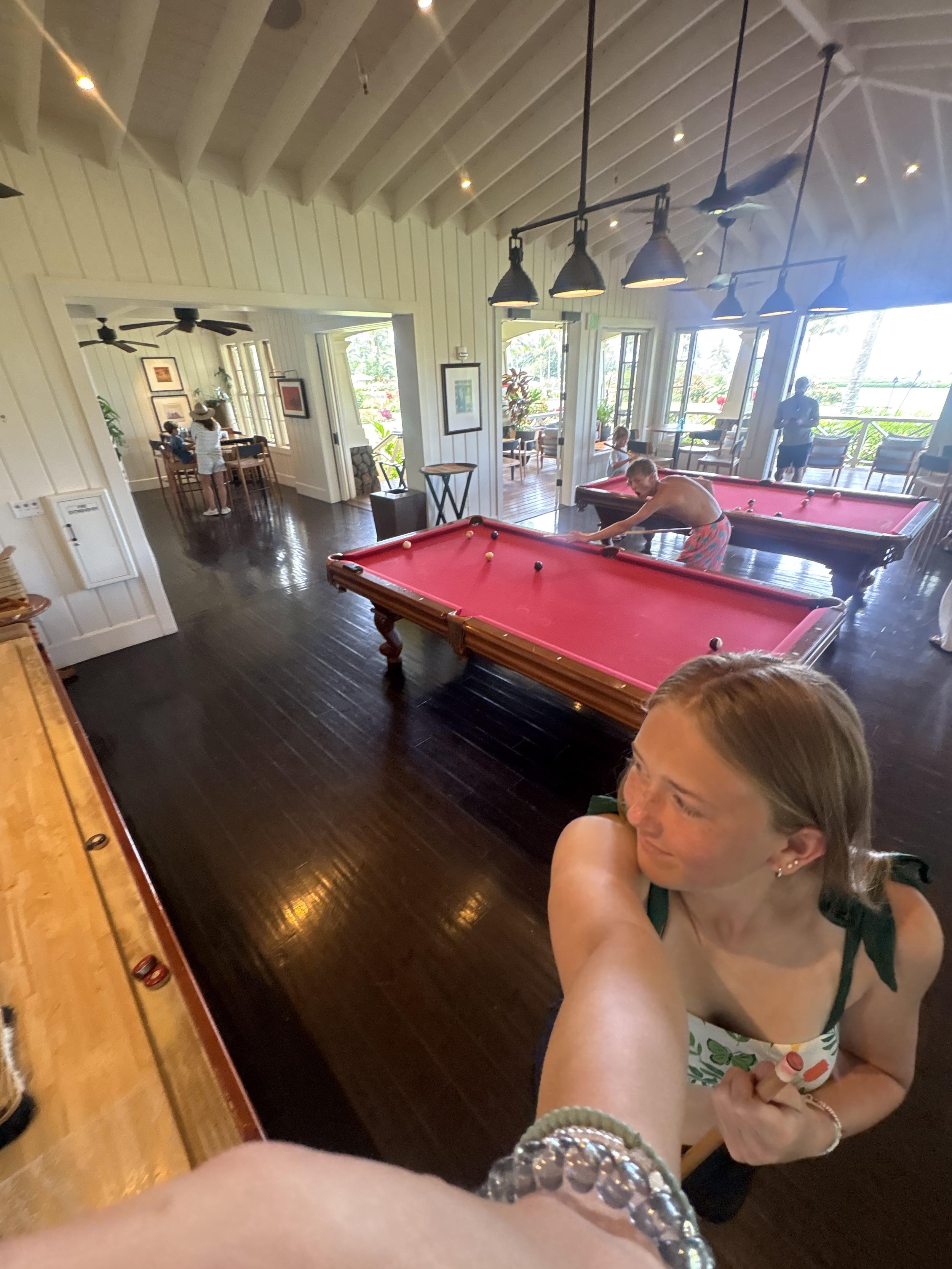 At the club they have a lot of fun games inside but one that I loved was pool. we played it a lot and we also got to do a lot of pickleball.